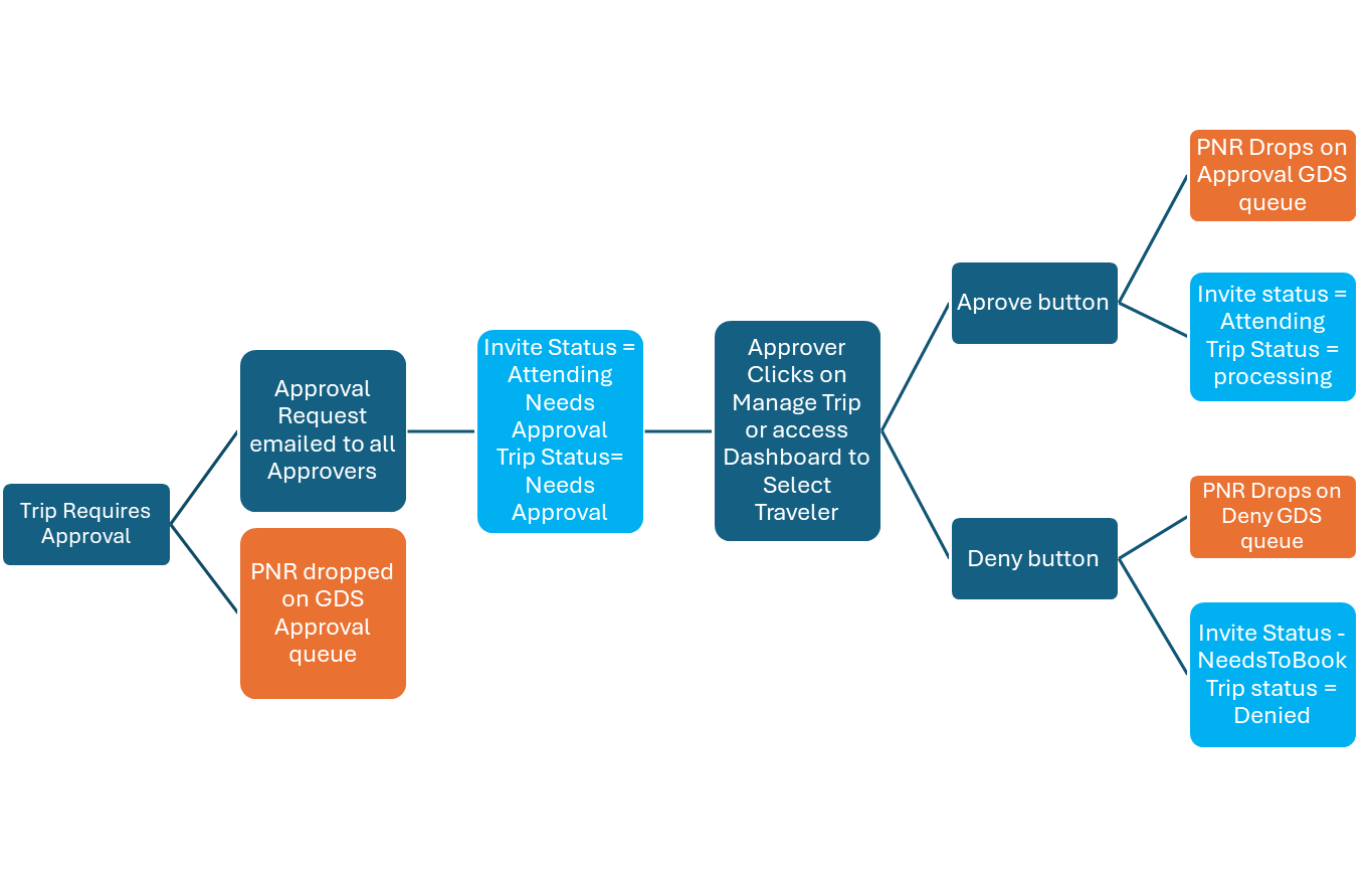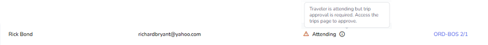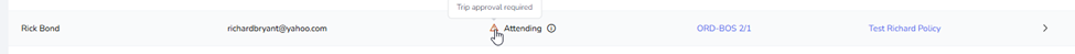 4. Trip will be marked in Invites + Trips Dashboard as Trip Approval Required in the Invites view of the dashboard and Needs Approval on the Trips view of the dashboard