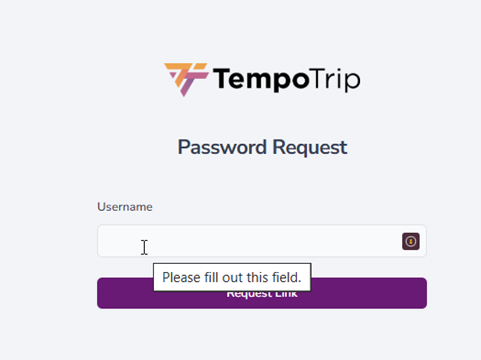 A new screen appears asking for your Username which is your email, then click on the Request Link button.