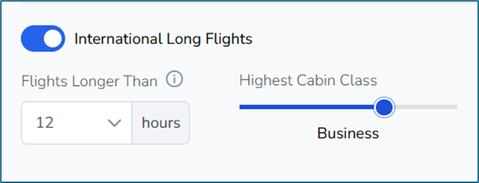 For flights categorized as "long haul," the hours calculated in the "Flights Longer Than" box refer specifically to the actual longest nonstop flights, not the total or cumulative flight times. If you are booking connecting flights, at least one flight must exceed the hour limit you input in the box.