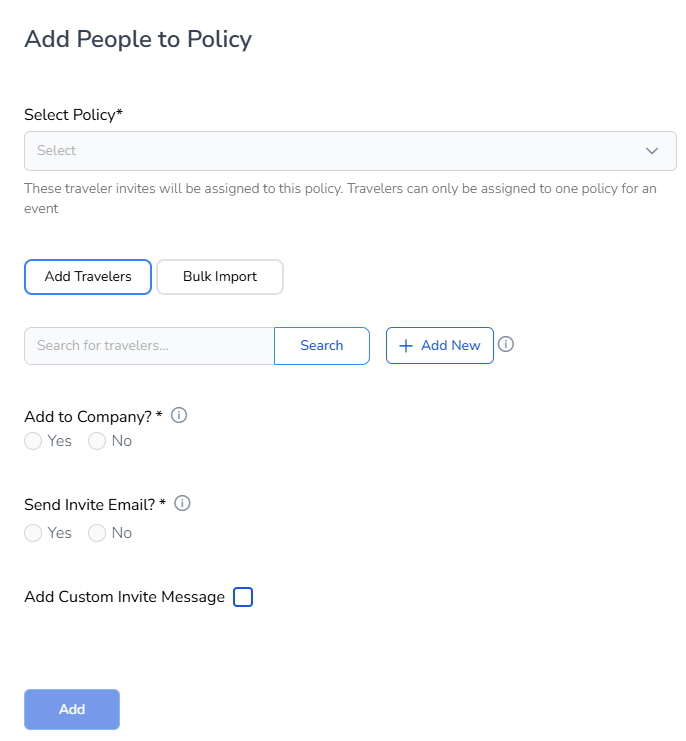 This article provides the steps for managing invites, adding travelers manually, searching for existing profiles, and utilizing bulk import features.
