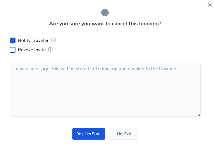 Notify the Traveler: You can send a notification directly to the traveler through Tempotrip. This will trigger an automated email to inform them of the cancellation.